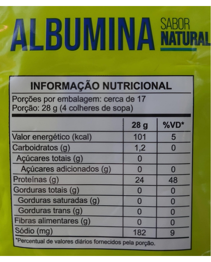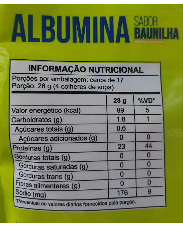 Informação Nutricional Albumina - SABOR BAUNILHA Porção de 28g (2 colheres de sopa)***