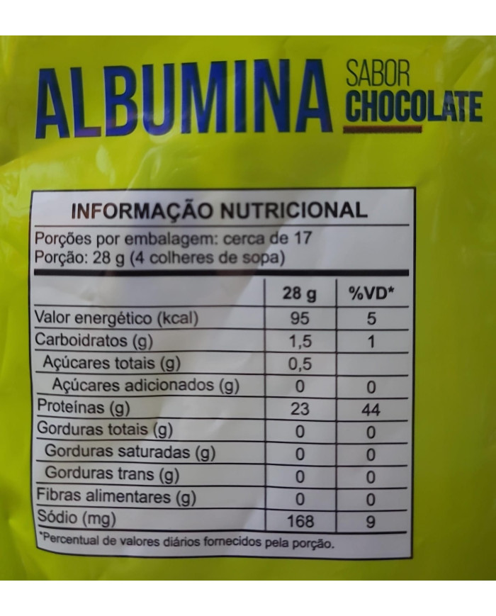 Informação Nutricional Albumina - SABOR CHOCOLATE Porção de 28g (2 colheres de sopa)***