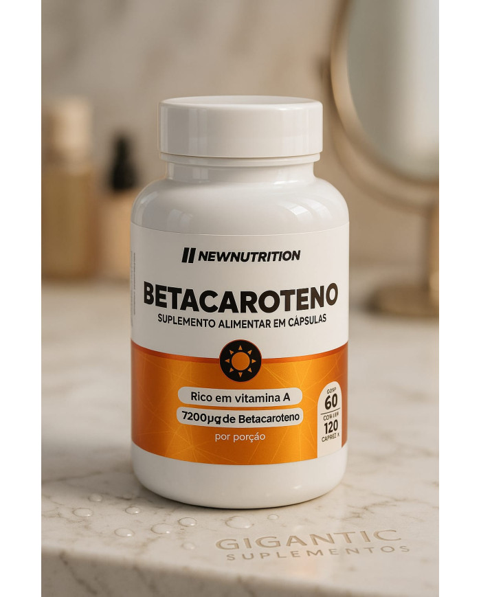 O Betacaroteno NewNutrition é um suplemento alimentar em cápsulas desenvolvido para quem deseja estimular o bronzeado natural, cuidar da saúde da pele, proteger a visão e fortalecer o sistema imunológico. Rico em Vitamina A, ele é uma poderosa fonte de antioxidantes que combatem os radicais livres, auxiliando no envelhecimento saudável e na manutenção de uma pele mais viçosa e com aparência radiante.