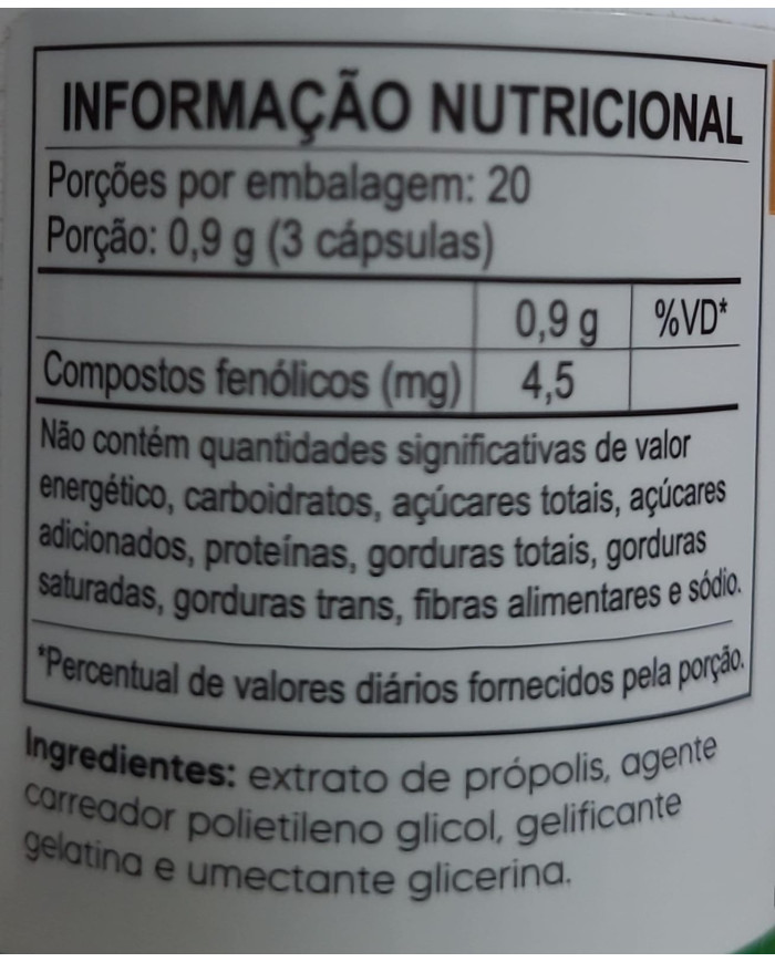 Cada cápsula contém 75 mg de extrato de própolis, garantindo concentração ideal de compostos fenólicos, que são os responsáveis pelos benefícios do produto.