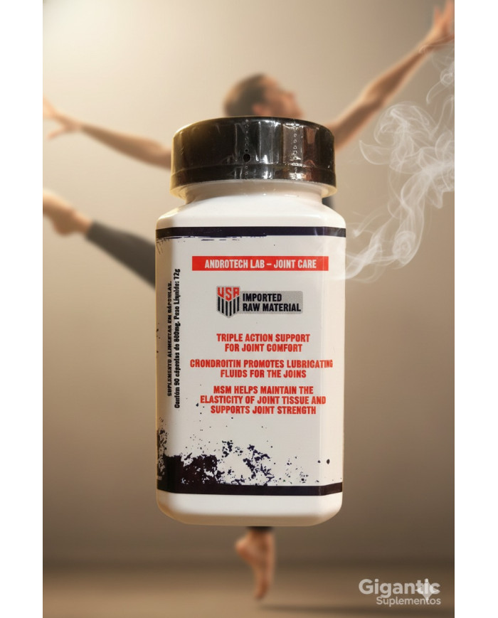 Joint Care Androtech é um suplemento alimentar que fornece três nutrientes importantes para a manutenção da saúde das articulações e dos tecidos conjuntivos: glucosamina, condroitina e MSM. Esses nutrientes são essenciais para a formação e processamento do tecido conjuntivo, além de ajudar a reduzir a inflamação nas articulações. A dose recomendada é de 2 cápsulas por dia, preferencialmente com as refeições .
