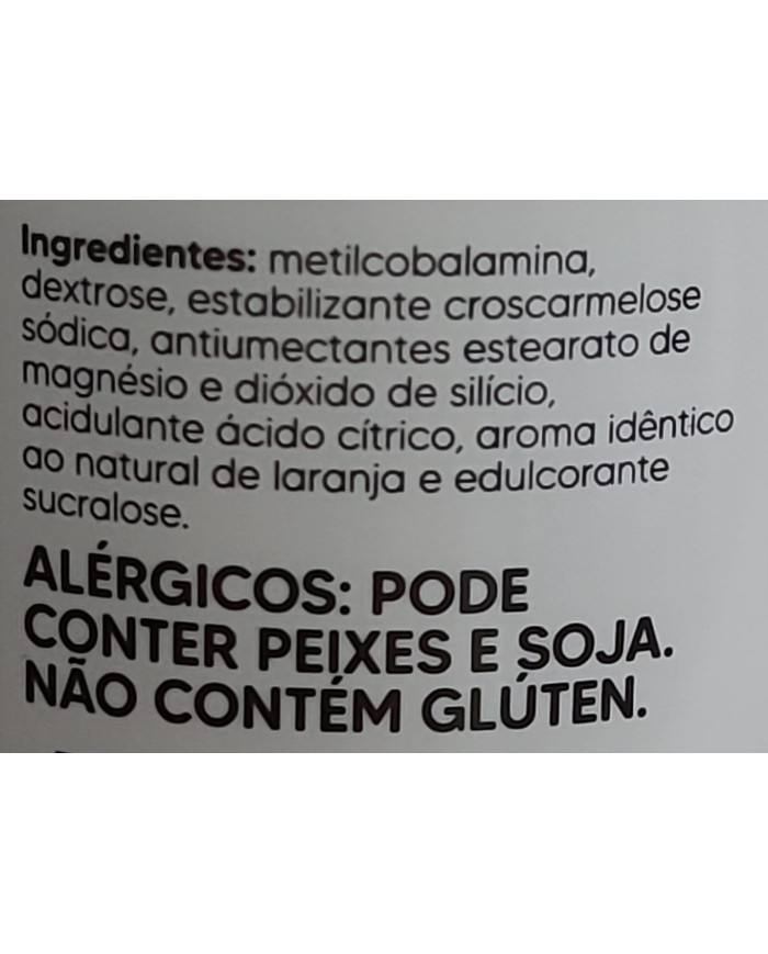 Metilcobalamina, dextrose, estabilizante croscarmelose sódica, antiumectantes estearato de magnésio e dióxido de silício, acidulante ácido cítrico, aroma idêntico ao natural de laranja e edulcorante sucralose.