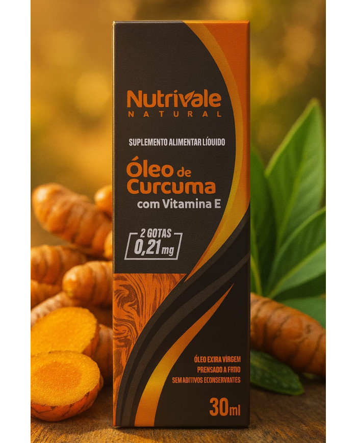 O Óleo de Cúrcuma com Vitamina E da Nutrivale é um suplemento alimentar líquido, desenvolvido com ingredientes naturais e de alta qualidade, ideal para quem busca os benefícios antioxidantes e anti-inflamatórios da cúrcuma associados à ação protetora da vitamina E. Sua fórmula contém óleo de algodão, extrato de rizomas de cúrcuma longa e DL-acetato de tocoferol (vitamina E), garantindo pureza e eficácia.