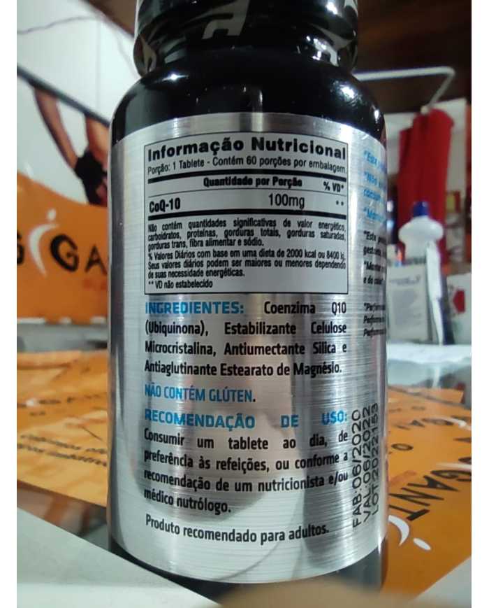 CoQ-10 contém 100mg de coenzima Q10 por tablete.