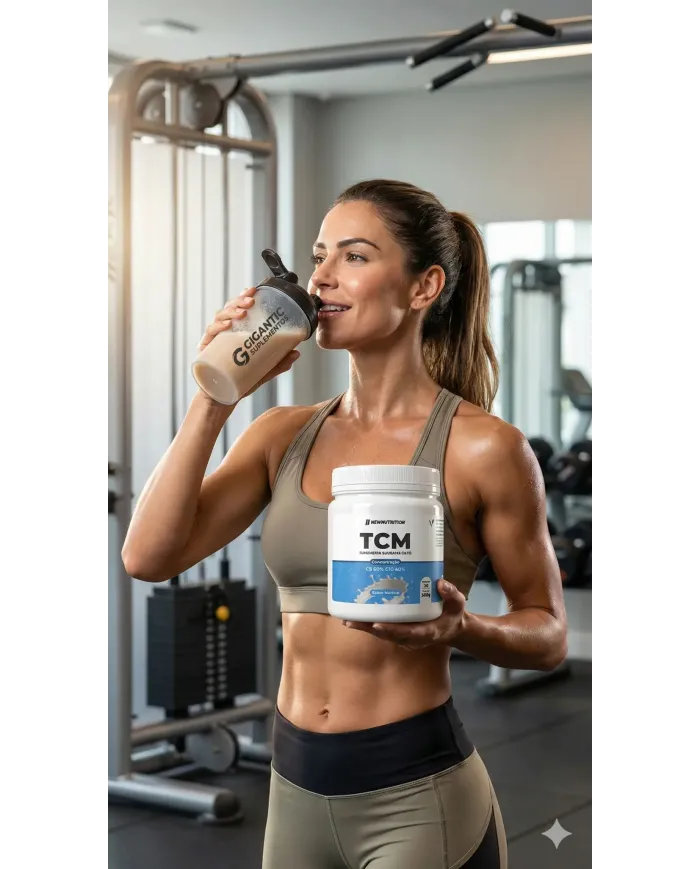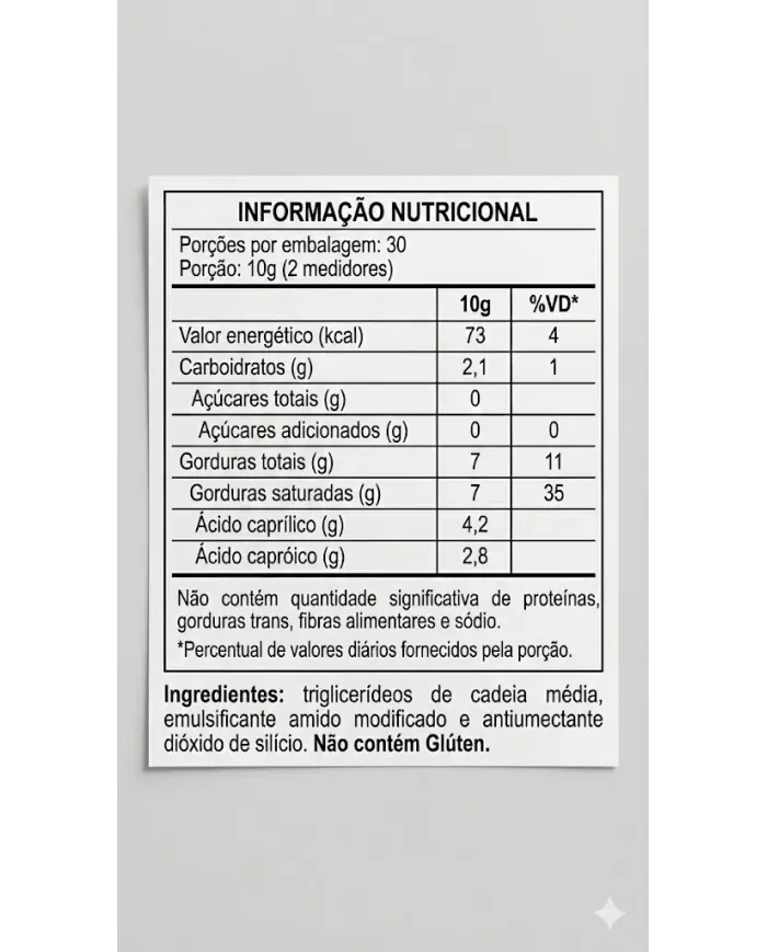 O TCM (Triglicerideos de Cadeia Media) e uma gordura funcional de rapida absorcao. Diferente de outras gorduras, ele e convertido com mais facilidade em energia, ajudando quem busca mais disposicao, foco e melhor rendimento em treinos e tarefas do dia a dia.