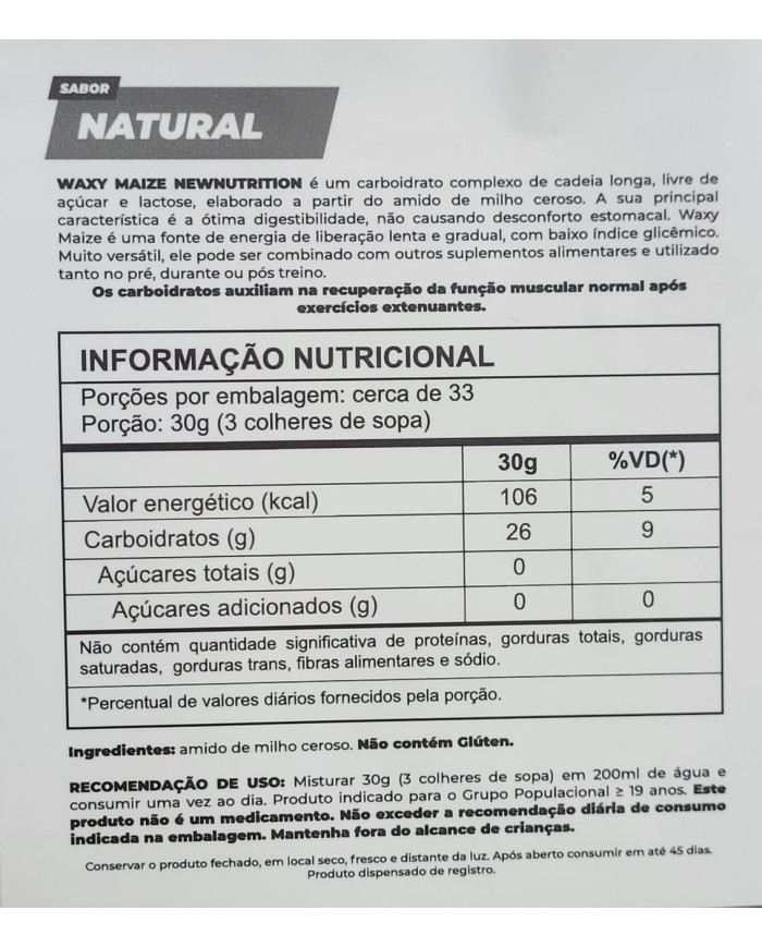 É um suplemento formulado com waxy maize, um produto derivado do amido de milho ceroso, de alto peso molecular, rico em amilopectina e isento de açúcar.