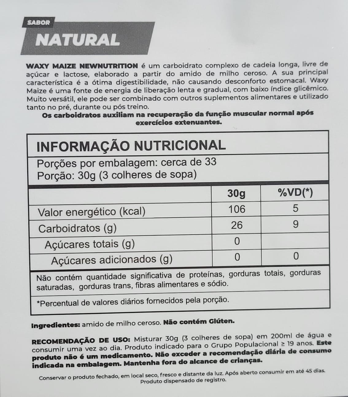 Waxy Maize fornece energia de rápida absorção igual a dextrose, porém com a vantagem de não dar um pico de insulina, e com o fornecimento de energia mais constante.